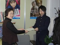 2010年12月21日に野幌高校の皆さんが募金を贈呈しに来てくださいました。その一週間前に校内で募金活動を行う際の色々なものを支部から借りていかれて、集めた募金とともに返しに来てくださったのです。地雷のレプリカ・写真のパネル・水がめ等はお役に立ったことでしょうか。またユニセフについて学習する為の資料もお役に立ったことでしょう。漠然と募金を募るだけではなく募金してくださる側の方々に理解を深めて頂いた上でご協力をお願いするということ、これからの良い経験にもなったのではないでしょうか。支部にいらっしゃった先生方も、ユニセフグッズを気に行ってくださり、持ち帰って頒布してくださいました.。.:*☆熱心な皆さまのご協力をありがとうございました。