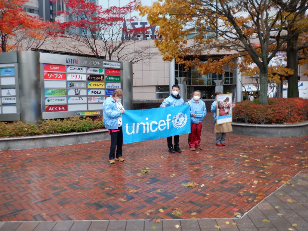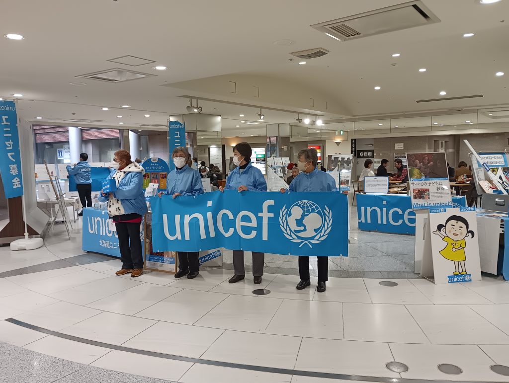 雪がちらつくなか北海道ユニセフ協会のボランティア
